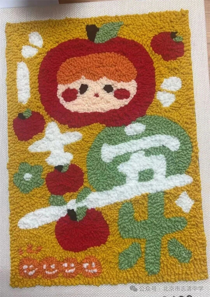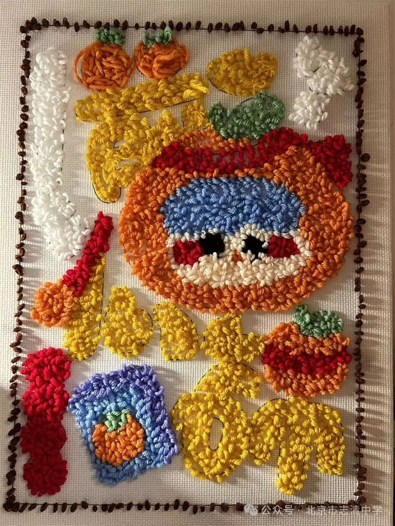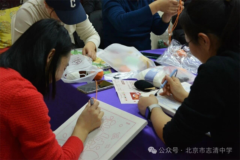 创作过程中,同事们借着手工创作的契机渐渐熟络起来,不时交流针法心得,分享创作灵感。当色彩斑斓的毛线在绣布上慢慢勾勒出萌宠的轮廓、花卉的灵动、几何的简约时,现场不时响起阵阵惊叹与欢笑。大家暂时放下了教学与工作的疲惫,沉浸在手工创作的治愈时光里,专注的神情、认真的姿态,成为了活动现场最动人的风景。